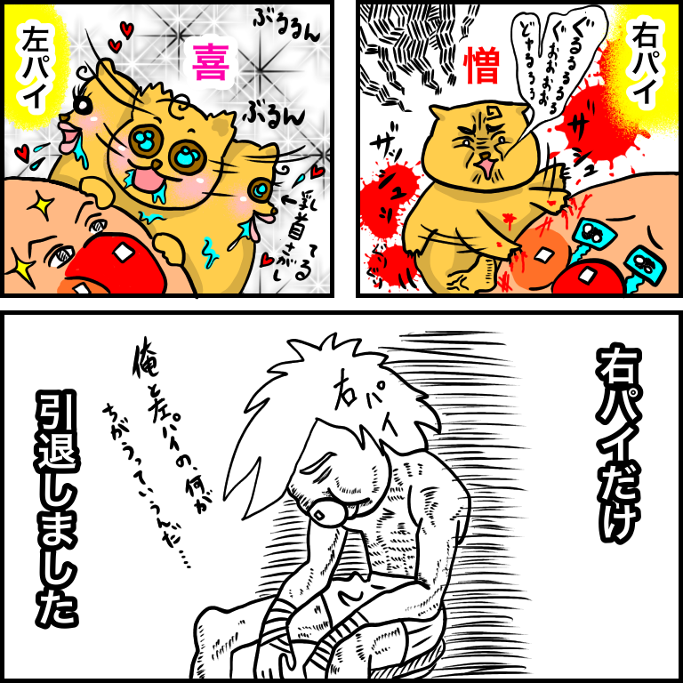 助産師さんのアドバイス通りに右から授乳スタートするも、親の仇かのように右乳に唸る、噛む、引っ掻く.....一体.....右パイが.......君に何をしたっていうんだ!?