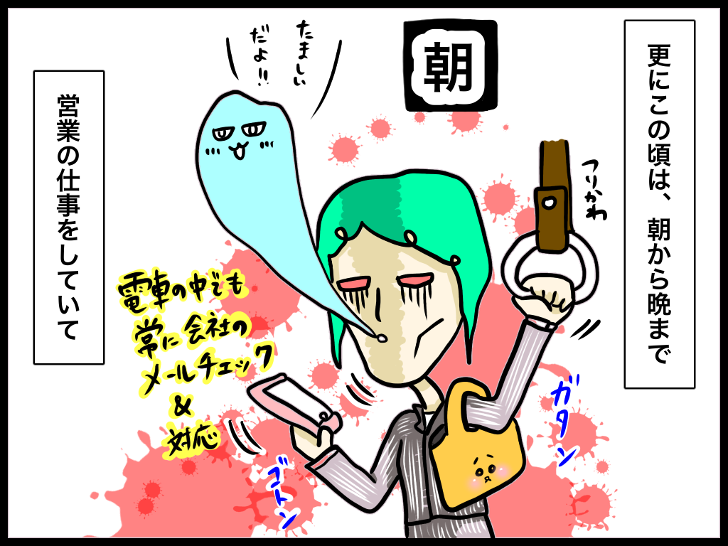 この頃は営業だったので、いつでもどこでもメールはチェックしてましたし、電話もすぐ出れるようにスタンバイしていて、就業時間以外でも心が休まることがありませんでした。