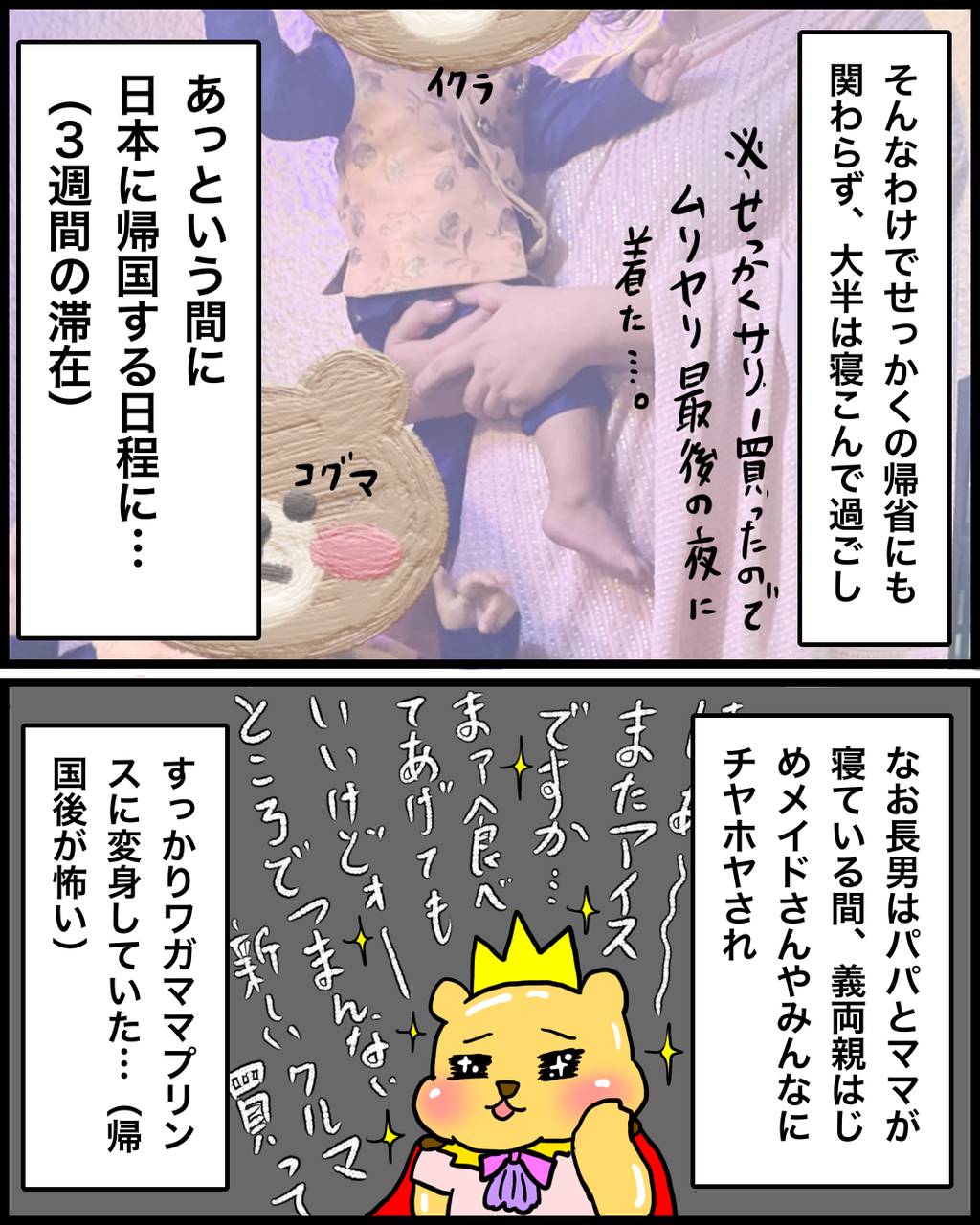 インドでチクングニア熱とかいうものに感染した話⑨ 2023年04月05日 ▼前回のお話▼ インド実家は、前にも書きましたがメイドさんやら人もいっぱいいて家事や育児は楽ちんなんですが、人との距離感ちょっと日本人からみると近すぎるので、結構気疲れします。な……なんじゃこりゃああああ(2回目)つづく!▼過去記事リンク ▼インド帰省記事▼ ▼インドに初めて行って泣いた話▼ 「インド帰省(2022)」カテゴリの最新記事 タグ :#チクングニア熱 < 前の記事次の記事 > コメント コメントフォーム 名前 コメント 記事の評価 リセット リセット 顔 星 情報を記憶 コメントを投稿する
