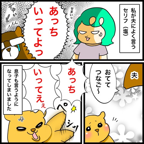 息子に移った、母の口癖は…… 2021年05月07日 夫に塩対応過ぎて、すみません…。反省は時々している……。そして私の言い方そのまんまで息子もおんなじ事を言うようになってしまった息子。夫スマンでも………でも……………ぬいぐるみにも言ってるの…なにそれ可愛過ぎか………!!しかし、保育園でお友達に言ったらいか ...