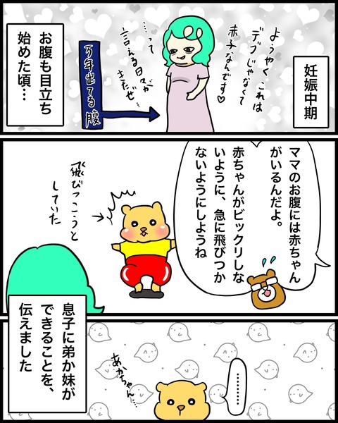 「赤ちゃん」に戸惑う兄…次男妊娠レポ⑩ 2022年07月29日 【最初から読む?⬇︎】 【前回の記事⬇︎】 【本日の記事⬇︎】赤ちゃんの存在を既に恐れている息子。なぜ……自分より小さい子を見るとなでなでしてくれるので、赤ちゃん=優しくするか弱い存在、というのは理解していたと思うのですが、いきなりの嫉妬丸出しに、むしろ母 ...