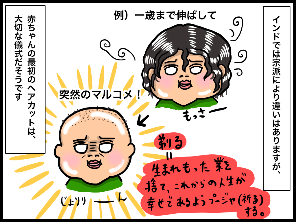 ファーストヘアカットは、イスラムや他の宗教ではわかりませんが、ヒンズー教徒の家庭ではひとつの儀式だそうです。